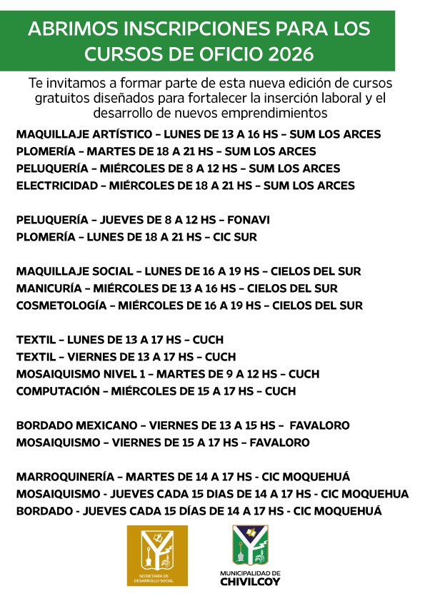 Se encuentra abierta la inscripción a los cursos de oficios del programa “Chivilcoy trabaja, emprende y aprende”
