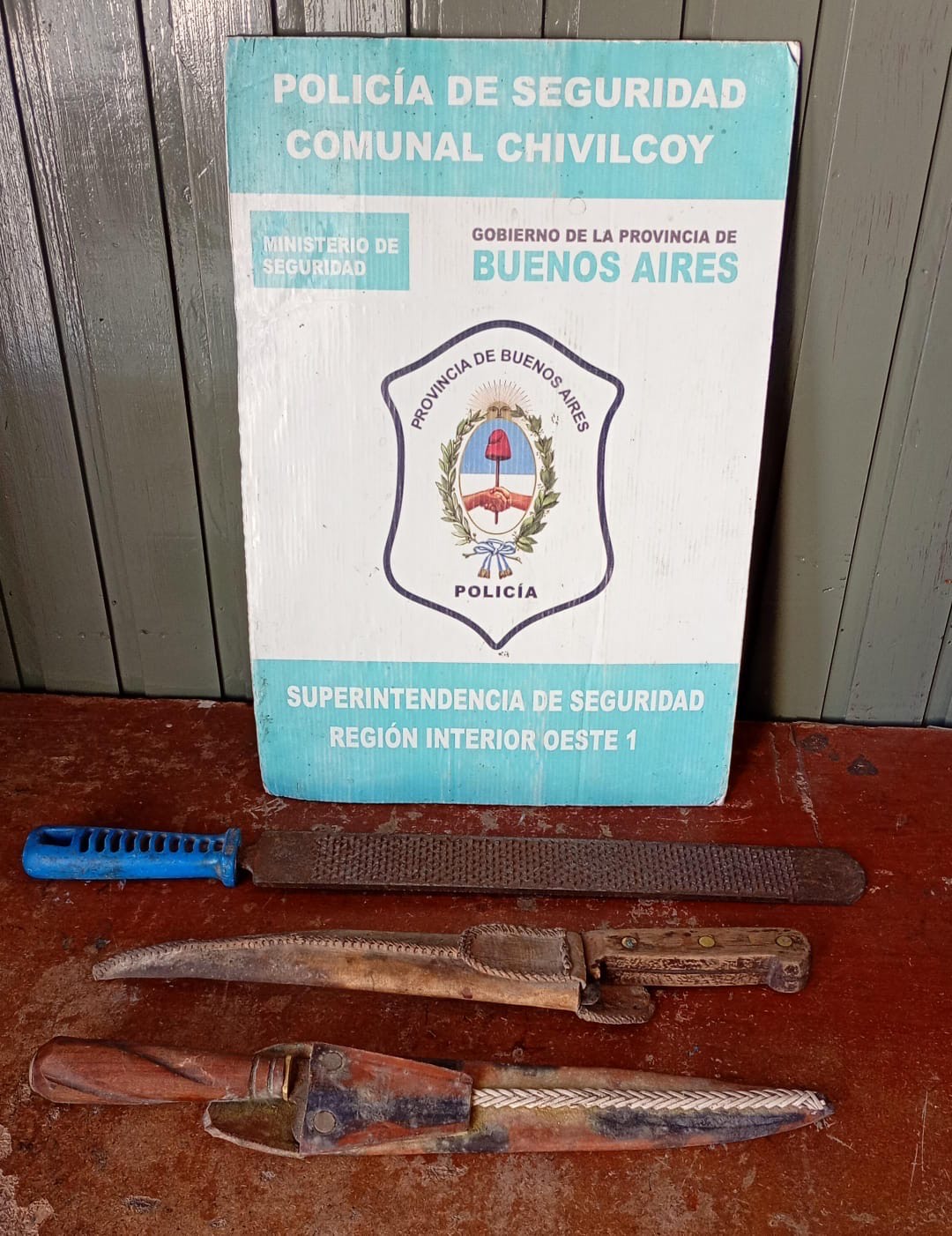 Asimismo, en tercer lugar, se secuestraron dos cuchillos una lima, correspondientes a un hecho de robo ocurrido el 8 de diciembre del año pasado, cuya víctima fue Pino Oscar Alfredo.