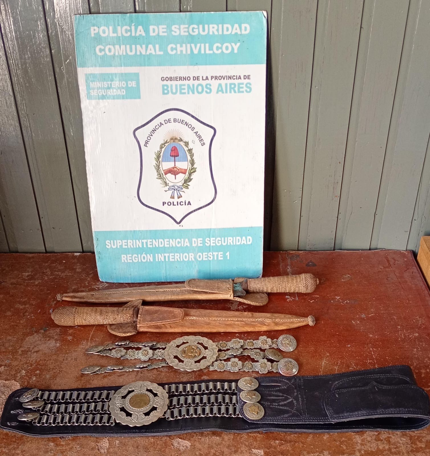 En primer término, se logró incautar en distintos domicilios, dos cuchillos con vainas de cuero y dos rastras de alpaca, elementos correspondientes a un hecho de robo cuya damnificada es Álvarez María Elena, ocurrido el 20 de julio de 2025.