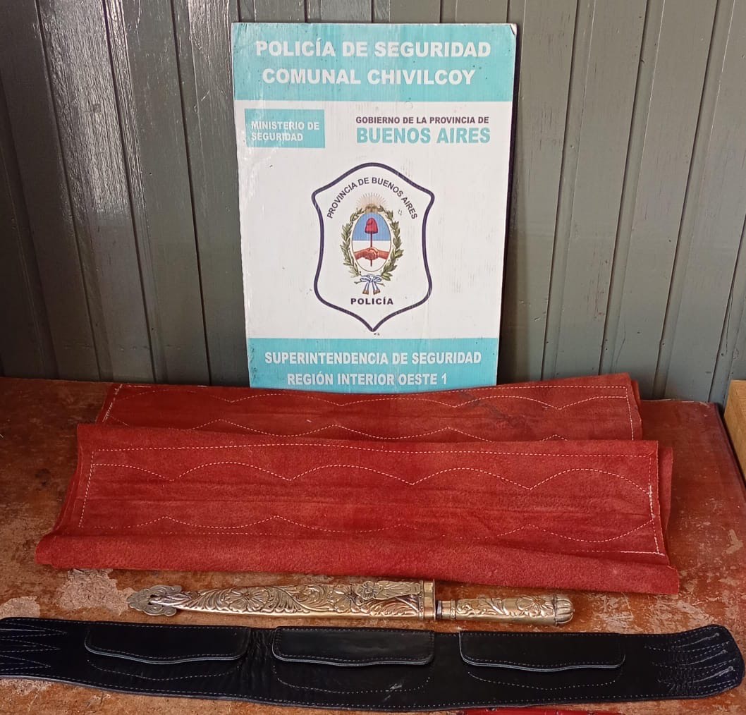 En segundo lugar, se incautaron dos sobrepuestos de cuero de carpincho, un cuchillo y un cinto tirador, vinculados a un hecho de robo ocurrido el 25 de agosto del año pasado, resultando damnificado Butteri Sergio.