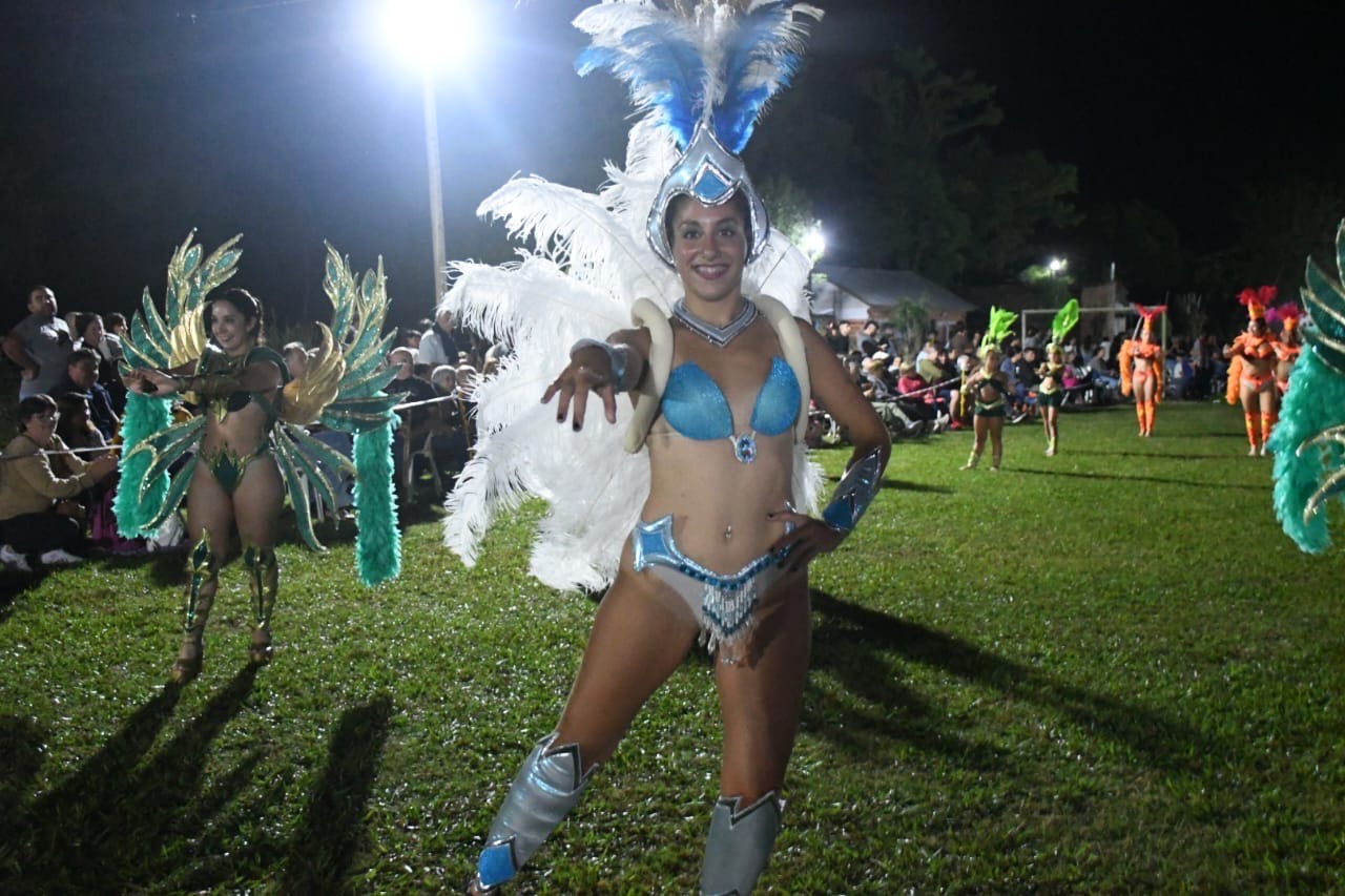 La conducción estuvo a cargo de Graciela Caffaro, mientras que las comparsas Anaycara y La Fabulosa desplegaron todo su ritmo y energía, animando al público con coreografías y trajes llenos de brillo.