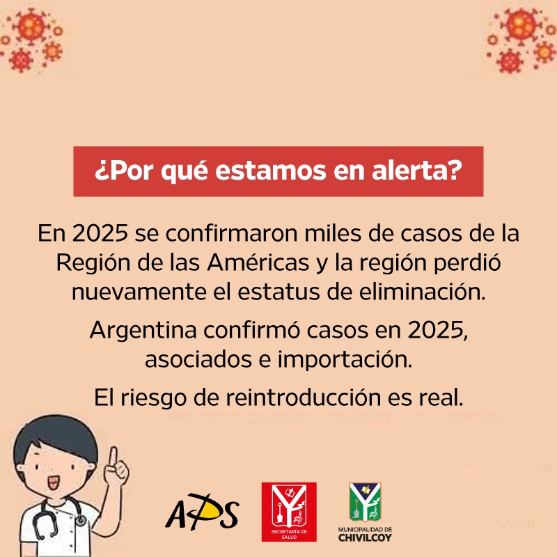 Desde el área de Salud remarcaron la importancia de contar con el esquema completo de dos dosis de triple viral. Las personas nacidas antes de 1965 se consideran inmunes. En cambio, quienes nacieron con posterioridad a esa fecha y el personal de salud deben acreditar la vacunación correspondiente.