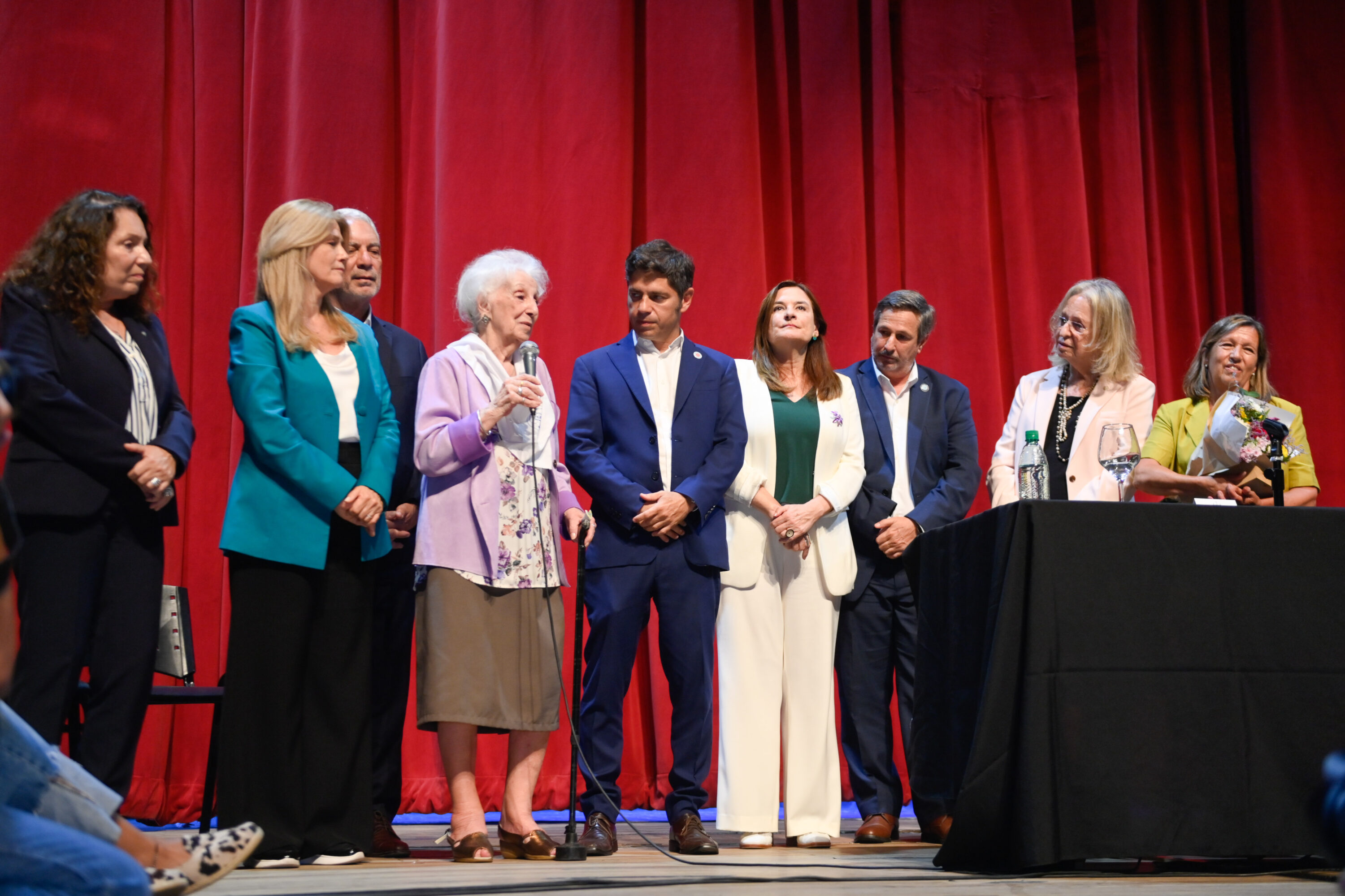 Estuvieron presentes la jefa de Asesores del Gobernador, Cristina Álvarez Rodríguez; la ministra de Hábitat y Desarrollo Urbano, Silvina Batakis; la directora general de Cultura y Educación, Flavia Terigi; la presidenta del Instituto Cultural, Florencia Saintout; el ministro de Desarrollo Agrario, Javier Rodríguez; la jefa de gabinete del Ministerio de Trabajo, Cecilia Cecchini; las subsecretarias de Promoción Sociocultural, Lorena Riesgo; de Políticas Culturales, Victoria Onetto; y de Educación, Claudia Bracchi; el diputado nacional Hugo Yasky; su par Natalia Zaracho; la diputada provincial Silvina Nardini; el director General y Artístico del Teatro Argentino, Ernesto Bauer; el director del Teatro del Lago, Tristán Bauer; el intendente de Berisso, Fabián Cagliardi; la secretaria general de UPCNBA, Fabiola Mosquera; el secretario General de la CTA provincia de Buenos Aires, Roberto Baradel; y la abogada feminista Nelly Minyersky.