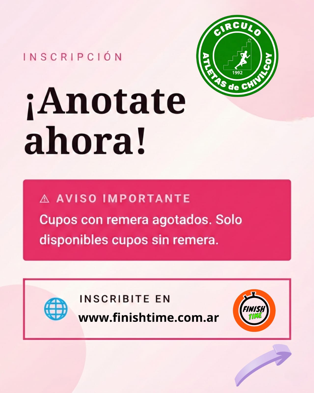 En este sentido, informó que la inscripción continúa abierta hasta el viernes al mediodía a través de la plataforma Finish Time (www.finsihtime.com), utilizada habitualmente para este tipo de competencias. También aclaró que ya se completó el cupo de participantes que recibirán remera oficial.