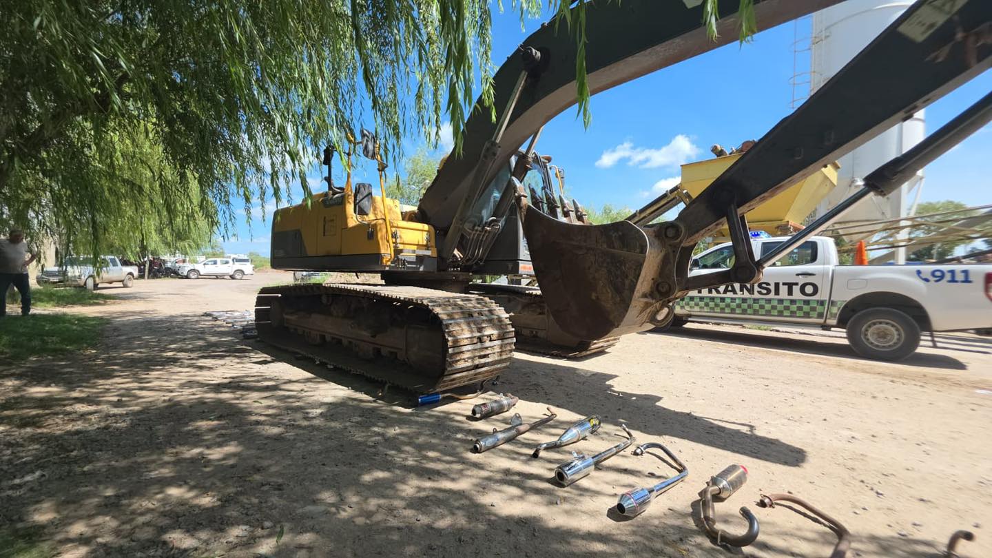 Asimismo, remarcó que los escapes destruidos suelen tener un alto valor económico. “Hay caños de escape que tienen un valor de casi un millón de pesos; bueno, acá han sido destruidos”, afirmó, y agregó que también se eliminan los de fabricación casera.