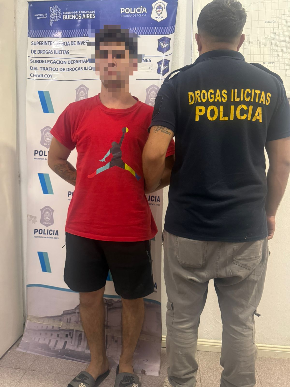 Respecto al segundo objetivo, el mismo se realizó en la localidad de Chacabuco, más precisamente en el domicilio de Calle Carlos Pellegrini N° 353 esquina Matheu, lugar de residencia del investigado RICARDO MARTIN FERNANDEZ ( 45), a quien se le secuestró en su poder nueve (09) plantas de marihuana (20) plantines de la misma sustancia estupefacientes, (1) envoltorio de nylon con COCAÍNA, una balanza de precisión, un aparato de telefonía celular, un Frasco de Vidrio con cogollos de marihuana, una tijera, y demás elementos probatorios. Realizados Test Orientativos, respecto al envoltorio de COCAÍNA, el mismo arrojó un pesaje de 2,9 gramos mientras que la MARIHUANA arrojó un pesaje de 1, 809 kg.