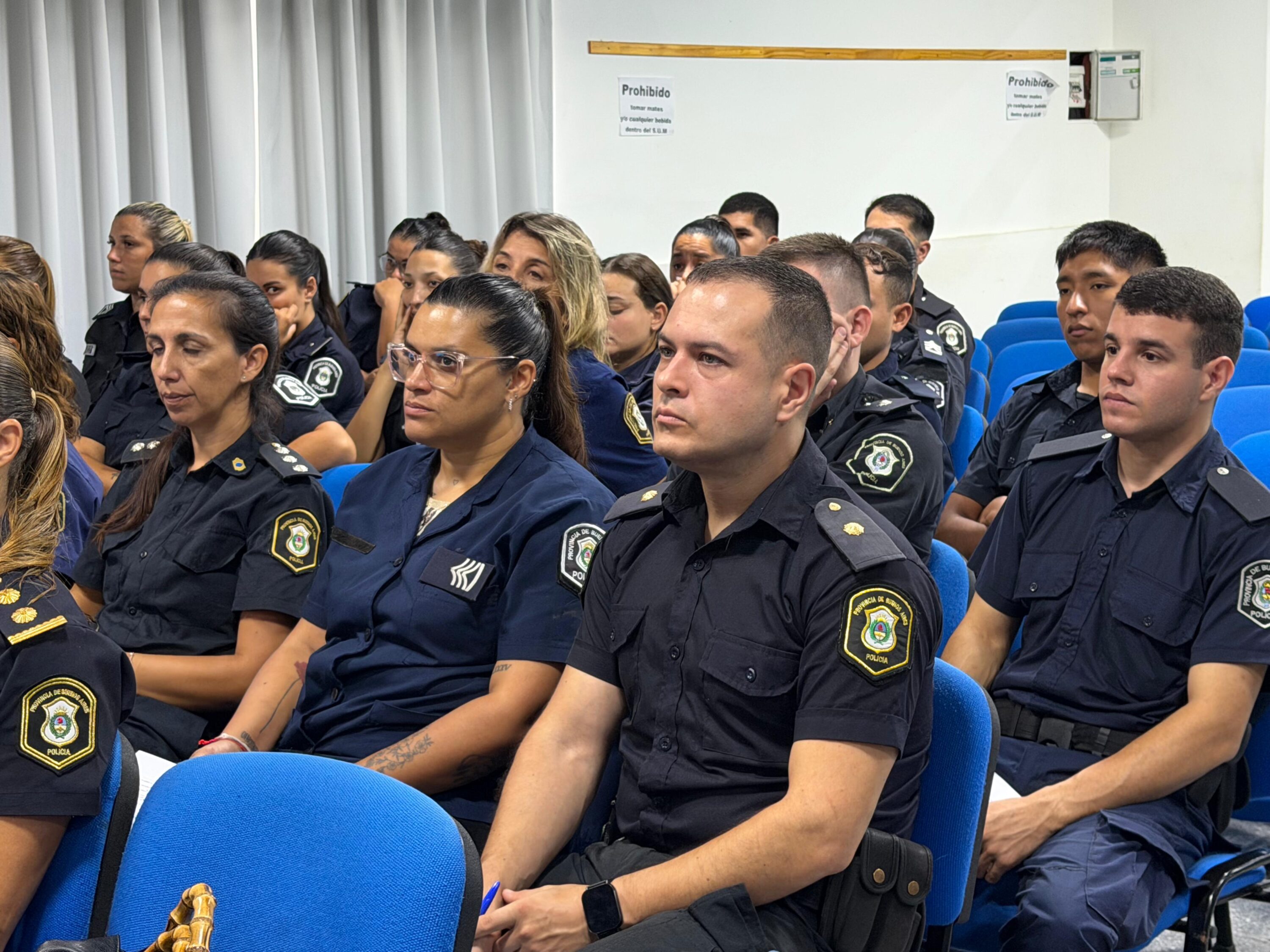 También se puso en valor el trabajo de la coordinadora zonal, Comisario Mayor Mónica Penini, y su equipo, junto a la abogada y subcomisario Etelvina Urga, quien brindó detalles sobre el desarrollo de la jornada. Urga explicó: “Nosotros estamos encargados de capacitar al personal policial. Tenemos a cargo 16 comisarías en la coordinación y hacemos un enorme trabajo en equipo”. Además, precisó que el alcance es amplio: “Capacitamos al personal de todas las áreas, no solamente de seguridad, sino de patrullas rurales, delitos cibernéticos”.